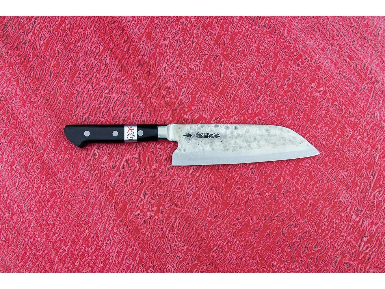 About the shape – This is also a multi purpose knife, but with a slight vegetable bias. Santoku means ‘Three Virtues’ or ‘To solve Three Problems’. The virtues or problems are slicing, dicing and mincing. Santoku is usually found in 160mm – 190mm lengths. These are more and more popular in Western kitchens due to the unique shape and smaller easy to handle size.