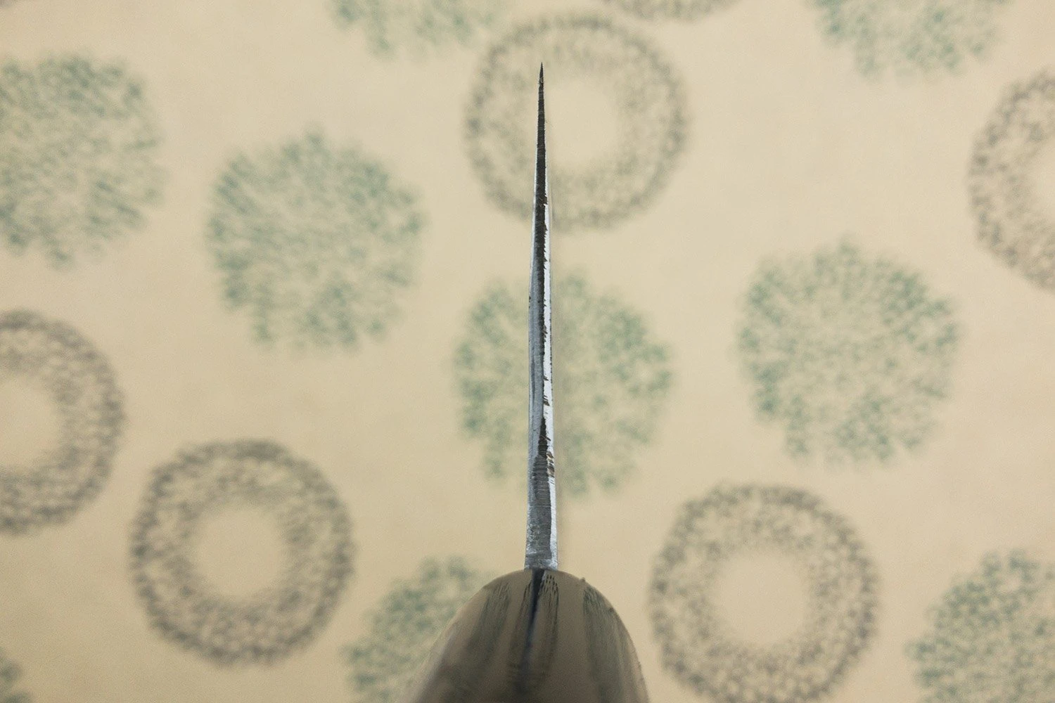 Fujiwara was one of the first to develop the technique of making a blade with a carbon steel core laminated with an outer layer of stainless steel for a high-performance knife with lower maintenance. He pushes his steel to its absolute limit of hardness, creating a blade that requires respect and care but stays sharp for a ridiculously long time.