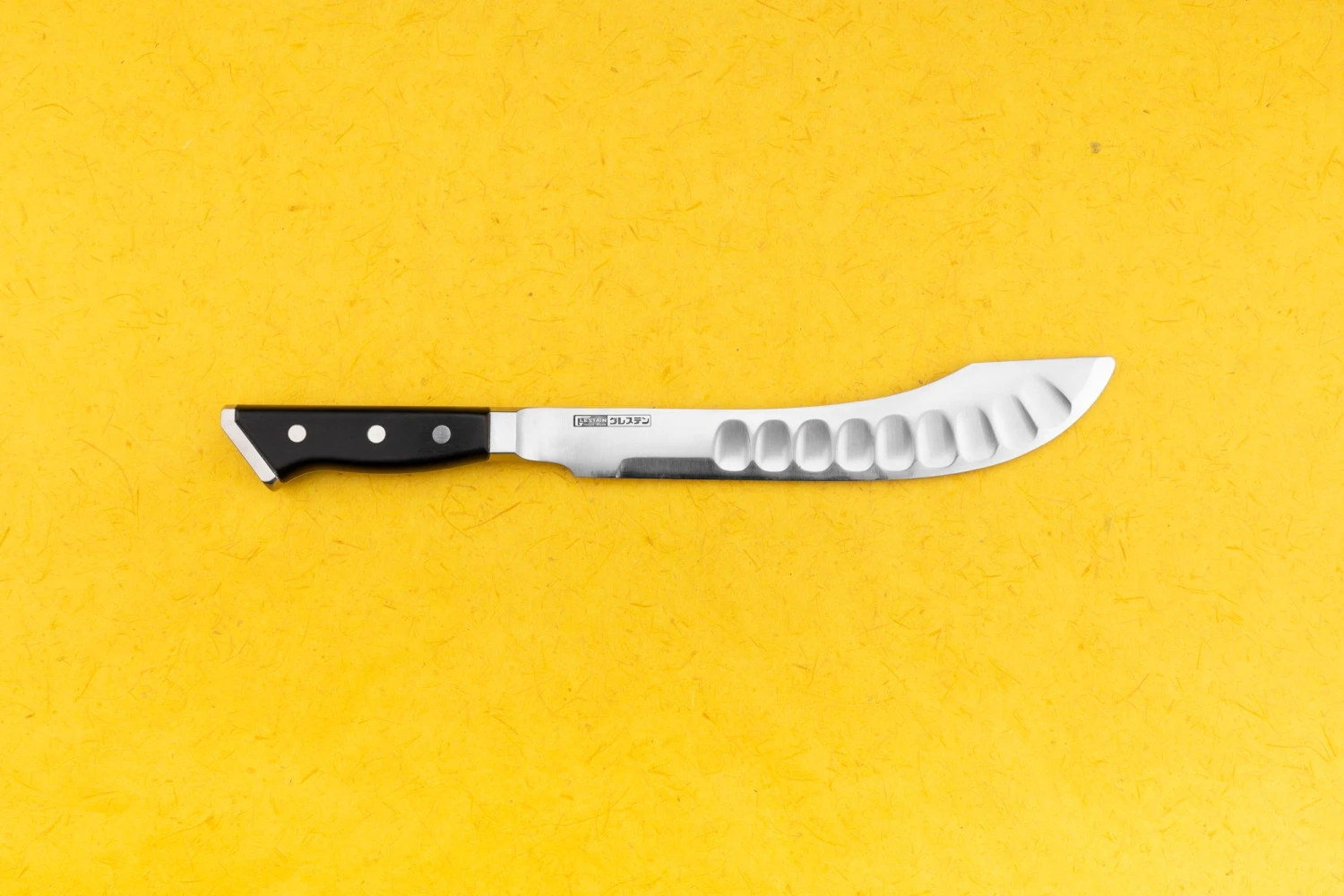 About Glestain K-series – This is one of the best-engineered knives I’ve ever seen. The geniuses behind Glestain set out to design the ultimate kitchen knife for professionals, and they struck gold. A big problem for fast-chopping cooks and chefs is food piling up on the blade, and this knife tackles the issue two ways: deep dimples break the surface tension on the blade, while a pronounced bevel on one side pushes the food over. Genius! The knife is right-handed and will want to steer slightly to the left, but with a little practice, you’ll be chopping at high speed with the best of them.Honma Kagaku, the company that made this knife, prioritizes form and function. They intimately understand the needs of customers who use these tools all day. This innovative approach has allowed them to stand out from their competition, making them successful since their founding in 1971. The K Series is their most popular line thanks to this revolutionary approach. ACUTO440 steel is the perfect choice when making a knife for chefs. It takes an impressive edge while being totally stainless and durable enough to handle life in a professional kitchen.