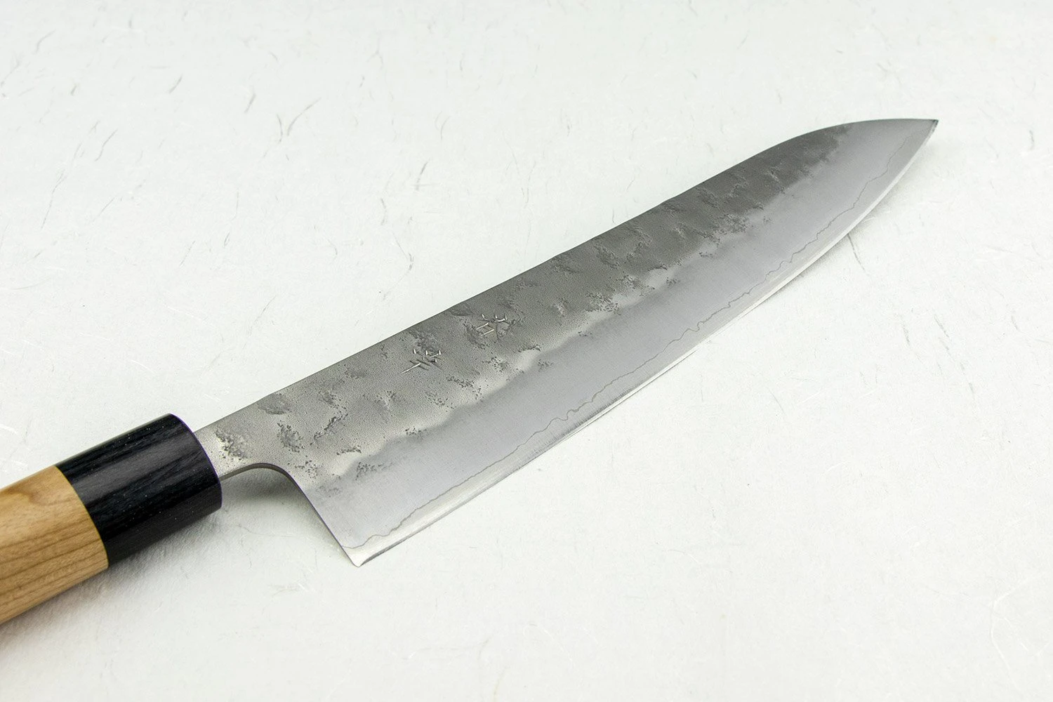 About the Shape – Inspired by the profile of a traditional European chef knife, Gyutos are a multi purpose knife with a slight meat cutting bias. “Gyuto” translates to “cow sword.” If you want one knife to do it all, This is it. Starting at 180mm, Gyutos can reach the ridiculously long (and awesome) 370mm. For the at-home or professional cook, we recommend a Gyuto which measures between 210mm and 270mm long.