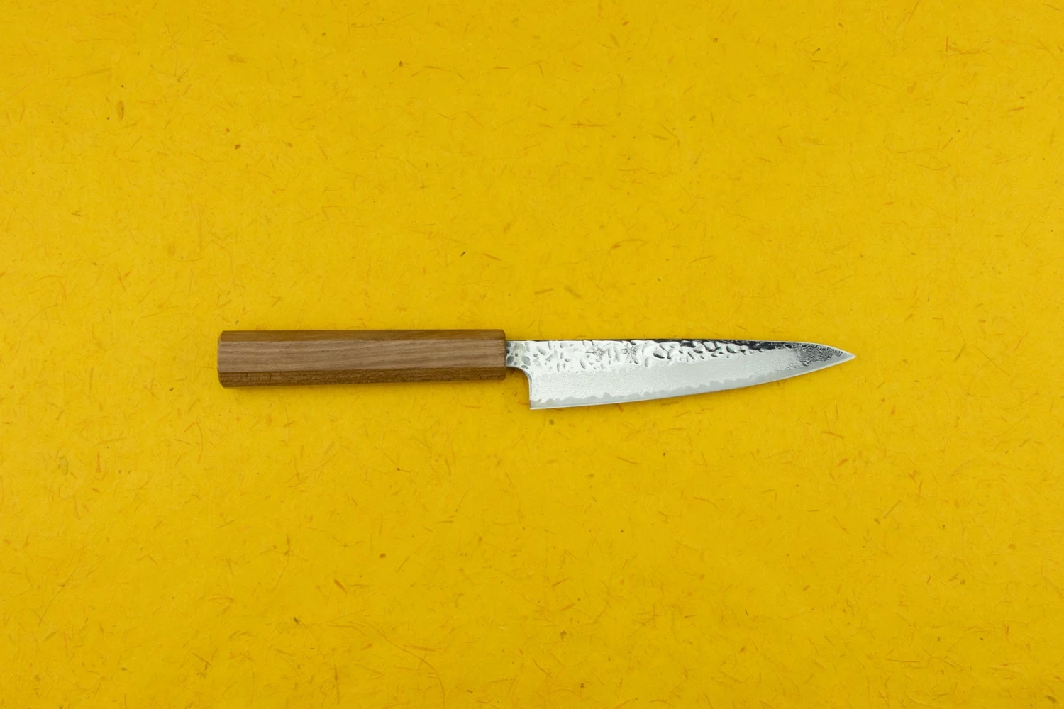The Haruyuki Nagisa is forged from a modern high-tech stainless steel called AUS-10, and I’m a huge fan. It can take and hold an edge, much like traditional Japanese carbon steel, without being a rusty pain in the butt!