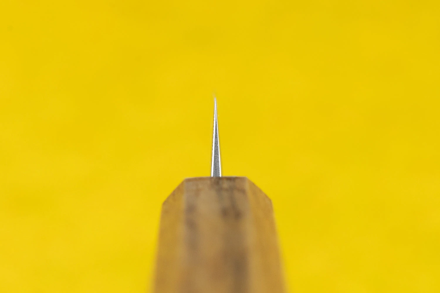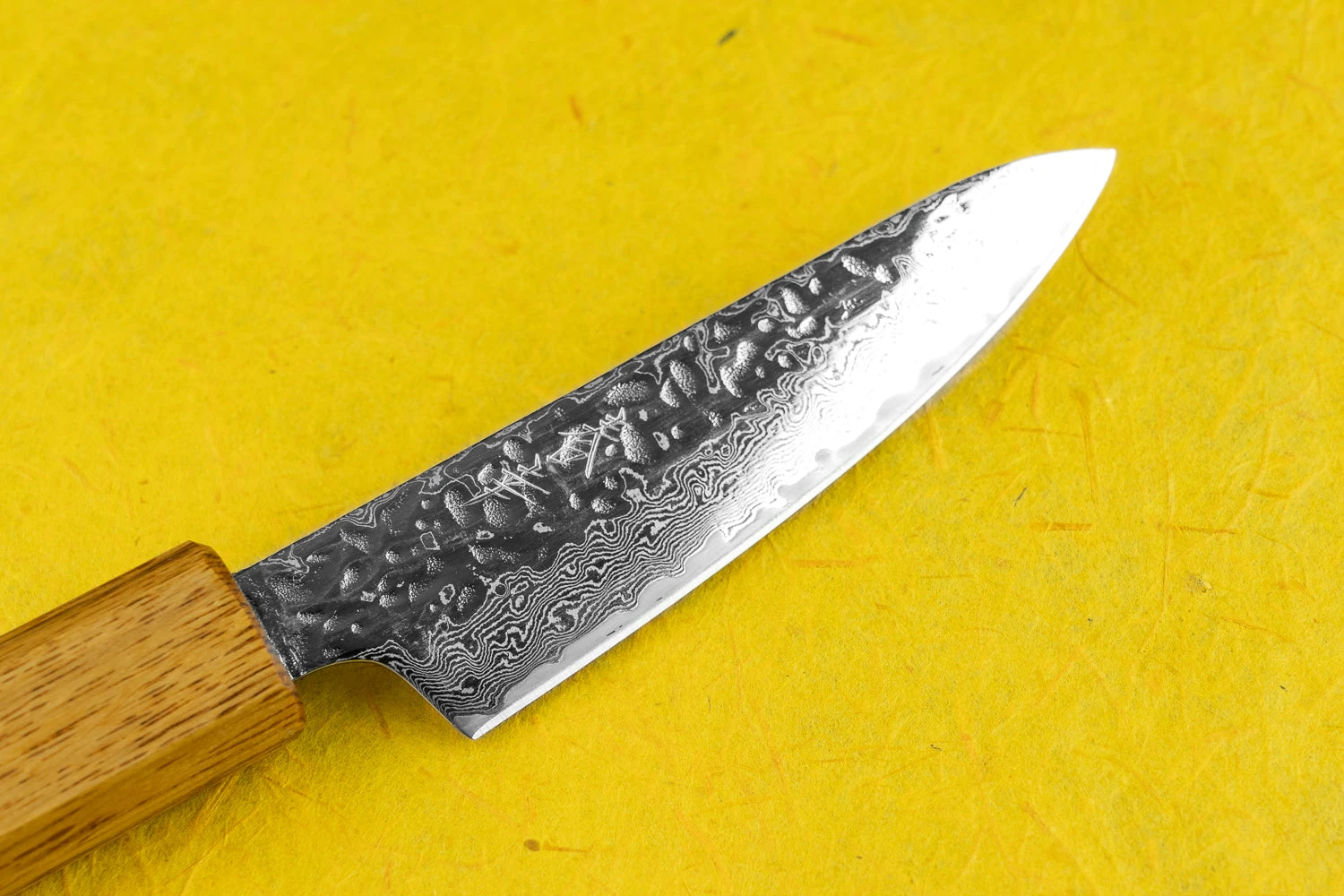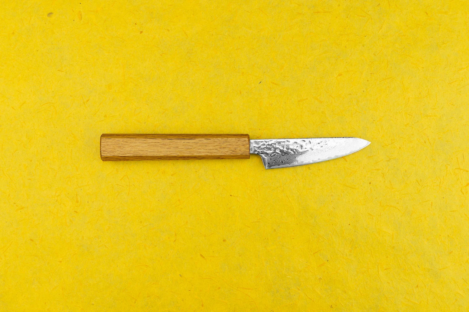 The Haruyuki Nagisa is forged from a modern high-tech stainless steel called AUS-10, and I’m a huge fan. It can take and hold an edge, much like traditional Japanese carbon steel, without being a rusty pain in the butt!