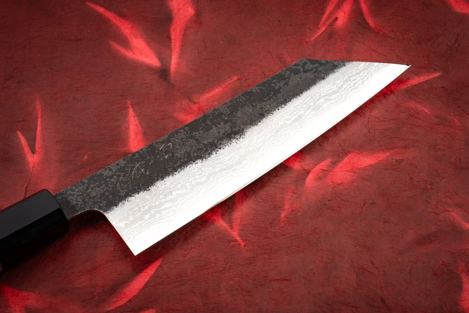 About Hatsukokoro Inazuma AS – The Hatsukokoro Inazuma (translates as “lightning”) AS is a hand-forged masterpiece, made by a talented Blacksmith in Tsubame Sanjo who prefers to remain anonymous. This knife has an Aogami Super core, with softer iron cladding. This combination of steel allows for the blacksmith to create a beautiful finish of folded steel and kurouchi – honestly feels like it should be too much, but here it is just right.
