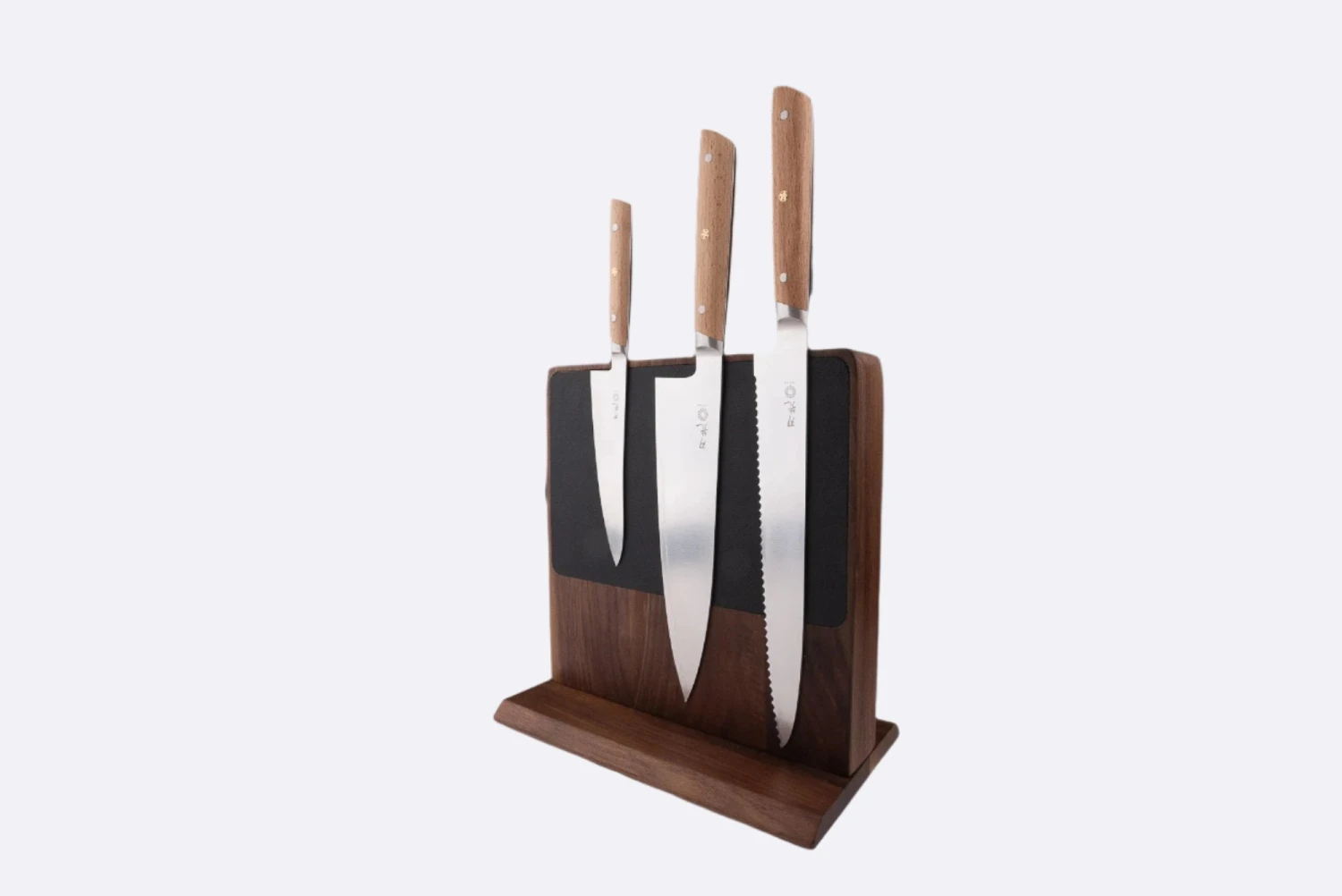 About Hazaki Knives – Hazaki, founded by Samuel Bouchard in Montreal, Canada, combines the best of both worlds: Japanese knifemaking and Canadian woodwork. Blades are expertly forged in Seki, Japan, from high-end Japanese steel and finished with beautiful handles in Montreal by Samuel and his team. Their knife blocks and magnets are expertly handcrafted in Canada from sustainably sourced woods.