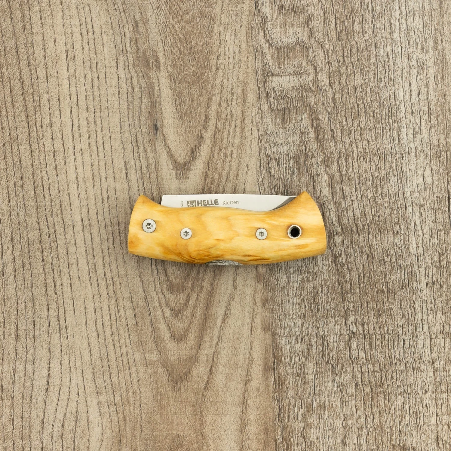 This folding knife is meant to be used, heavily reinforced with stainless steel liners in the handle and a rock-solid back lock. The handle is contoured to be held firmly with three fingers and prevents slipping. In Helle’s own words, the Kletten is designed for small, un-planned adventures.