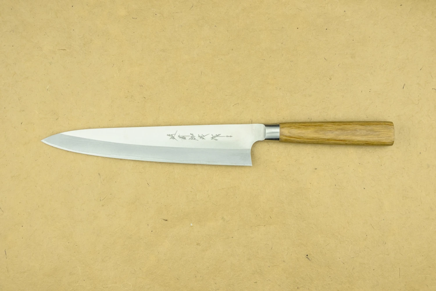 About the Shape Inspired by the profile of a traditional European chef knife, Gyutos are a multi purpose knife with a slight meat cutting bias. “Gyuto” translates to “cow sword.” If you want one knife to do it all, This is it. Starting at 180mm, Gyutos can reach the ridiculously long (and awesome) 370mm. For the at-home or professional cook, we recommend a Gyuto which measures between 210mm and 270mm long.