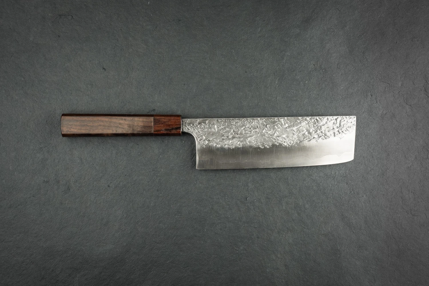 Now he forge-welds everything in house, from hard carbon steel clad with soft steel, stainless steel clad with stainless, and carbon steel clad with stainless steel. The ATS-34 steel used in these knives is forge-welded in house by Manaka-san. While mostly stainless, it is more durable and keeps an edge better than many comparable steels. It will patina very slowly, so don’t leave it dirty overnight!