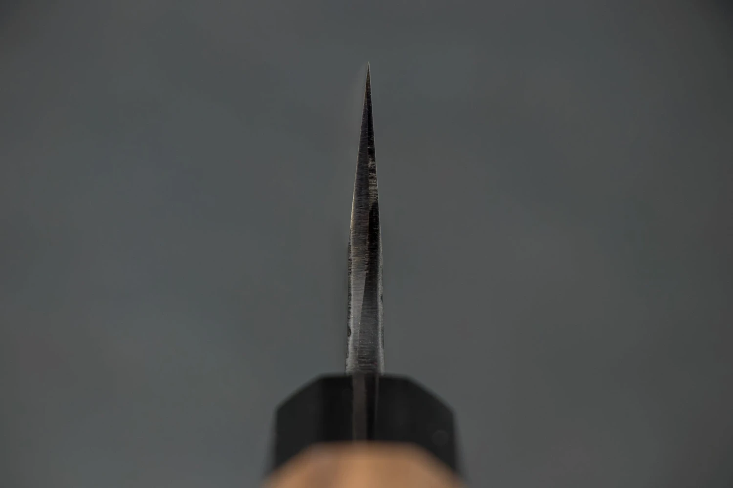 About the Shape – The Honesuki is a Japanese style boning knife. Originally designed for poultry and small animals like rabbit, it excels for many larger butchering and fish filleting work. It has a relatively thick heel for scraping meat from bones, and a thinner tip for precise cuts. You don’t want to force this knife through bone, but it’s perfect for cutting through cartilage and tendons.