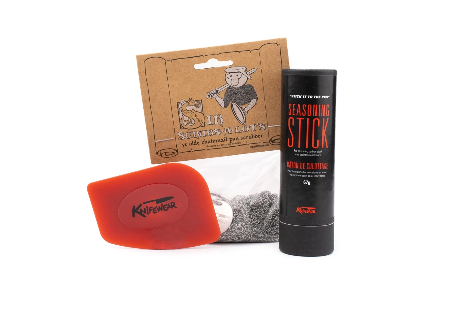 Sir Scrubs-A-Lot’s Chaimnail Scrubber scours anything that requires a heavier scrub, without damaging your seasoning.