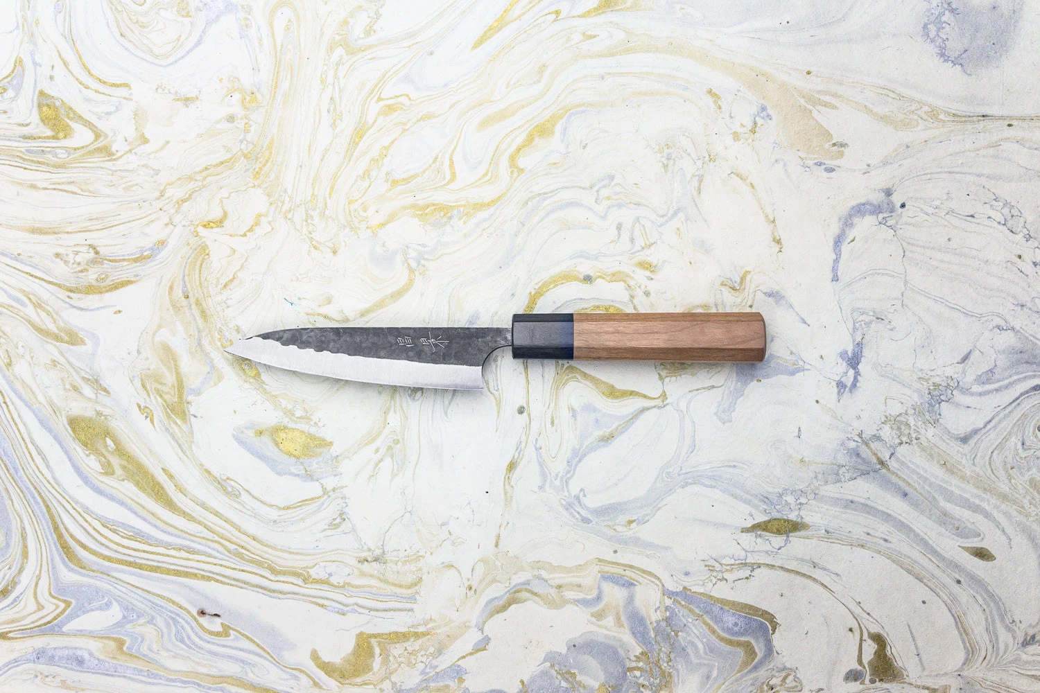The ‘tsuchime’ (meaning ‘hammered’) and ‘kurouchi’ (meaning ‘black hammered’) finish gives the impression of river pebbles, inspiring the name Koishi (meaning ‘small rocks’). A true culinary badass, like Jason Momoa in kitchen knife form.