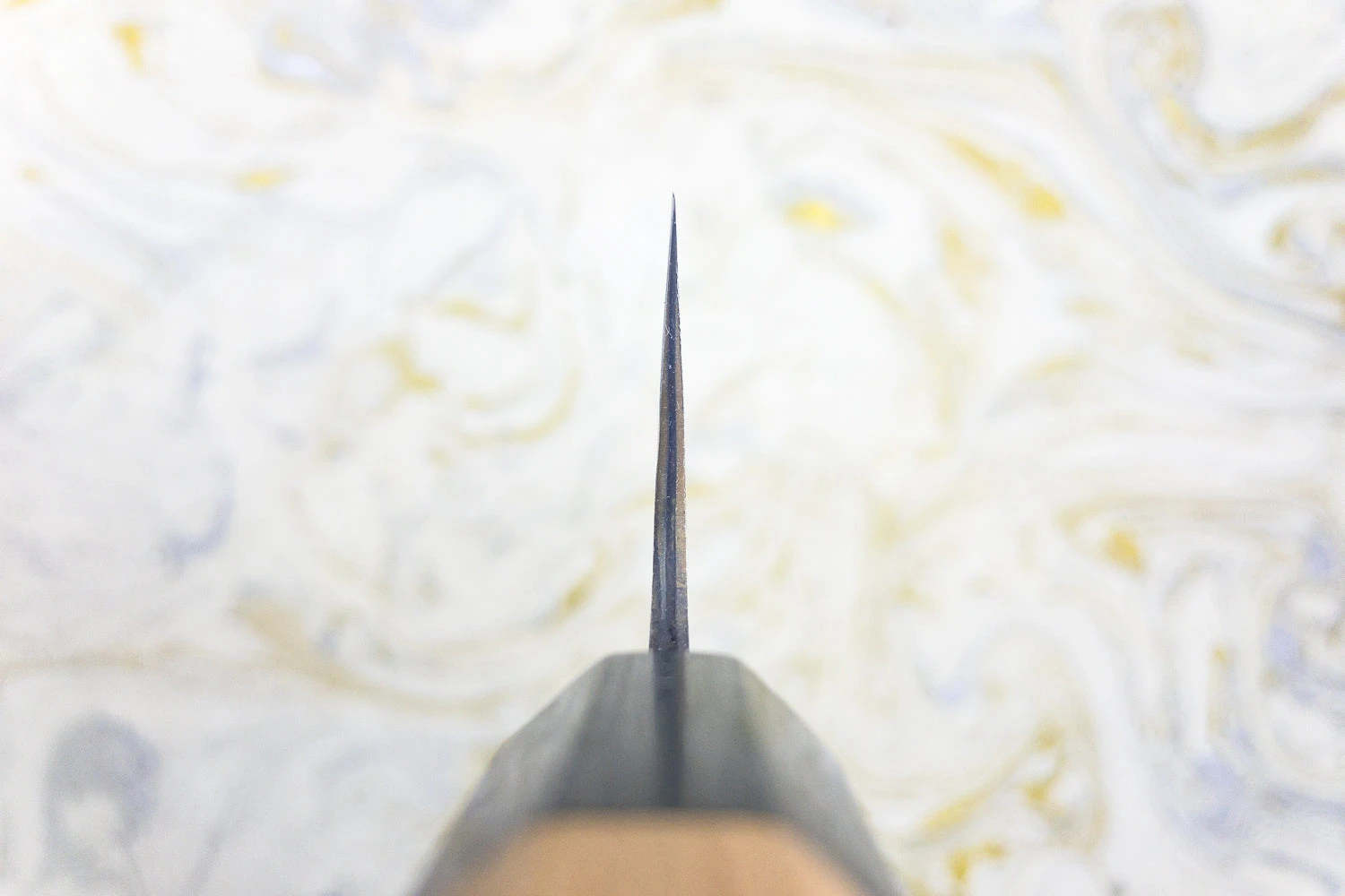These blades are thin and lightweight but substantial enough to fly through vegetables with ease. I love how most of the weight is focused on the business end of the knife, which is made from some truly remarkable steel. Kato-san forged this knife from Aogami Super, which gets shockingly sharp and keeps an edge for longer than most. The undisputed king of knife steel in my opinion.