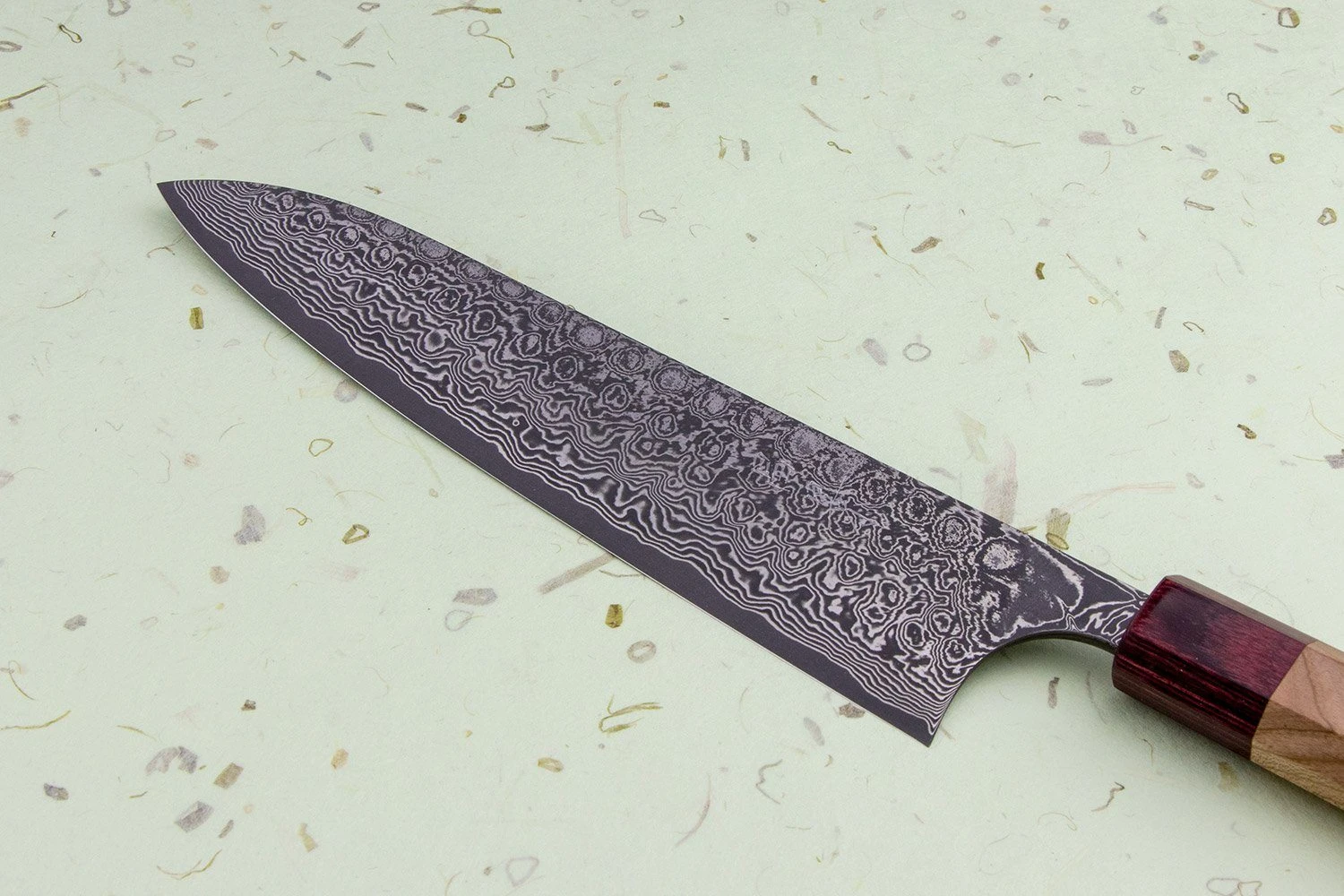 Takumi Ikeda-san loves making stunning damascus blades, and the Kumo is no exception. The name means ‘cloud’ in Japanese, inspired by the cloud-like patterns in the steel. Sandwiched between those gorgeous steel layers is a core of crazy-sharp VG10 stainless steel, an incredible material made to perform like ancient carbon steel but with minimal maintenance. The result is a blade that cuts like a dream while being super easy to care for.