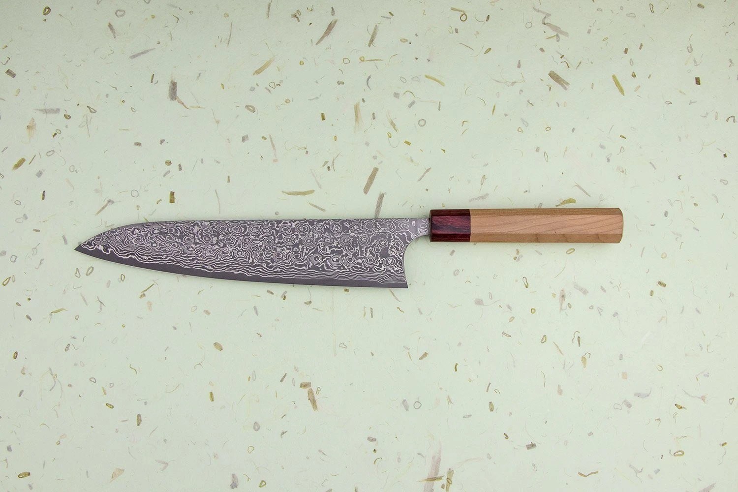 Takumi Ikeda-san loves making stunning damascus blades, and the Kumo is no exception. The name means ‘cloud’ in Japanese, inspired by the cloud-like patterns in the steel. Sandwiched between those gorgeous steel layers is a core of crazy-sharp VG10 stainless steel, an incredible material made to perform like ancient carbon steel but with minimal maintenance. The result is a blade that cuts like a dream while being super easy to care for.