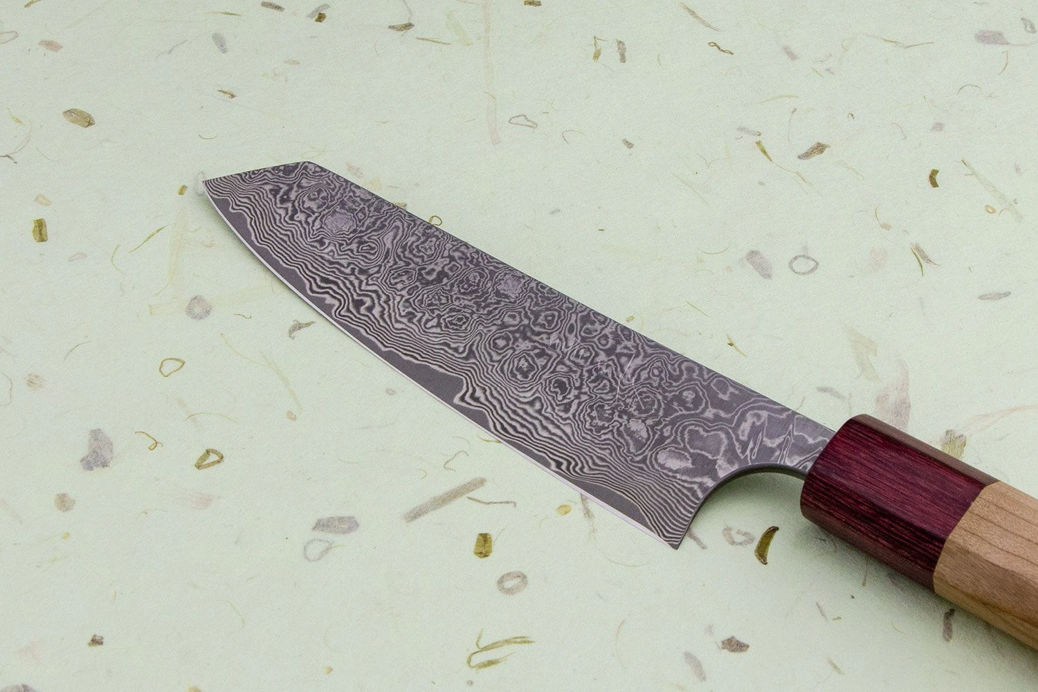 Takumi Ikeda-san loves making stunning damascus blades, and the Kumo is no exception. The name means ‘cloud’ in Japanese, inspired by the cloud-like patterns in the steel. Sandwiched between those gorgeous steel layers is a core of crazy-sharp VG10 stainless steel, an incredible material made to perform like ancient carbon steel but with minimal maintenance. The result is a blade that cuts like a dream while being super easy to care for.