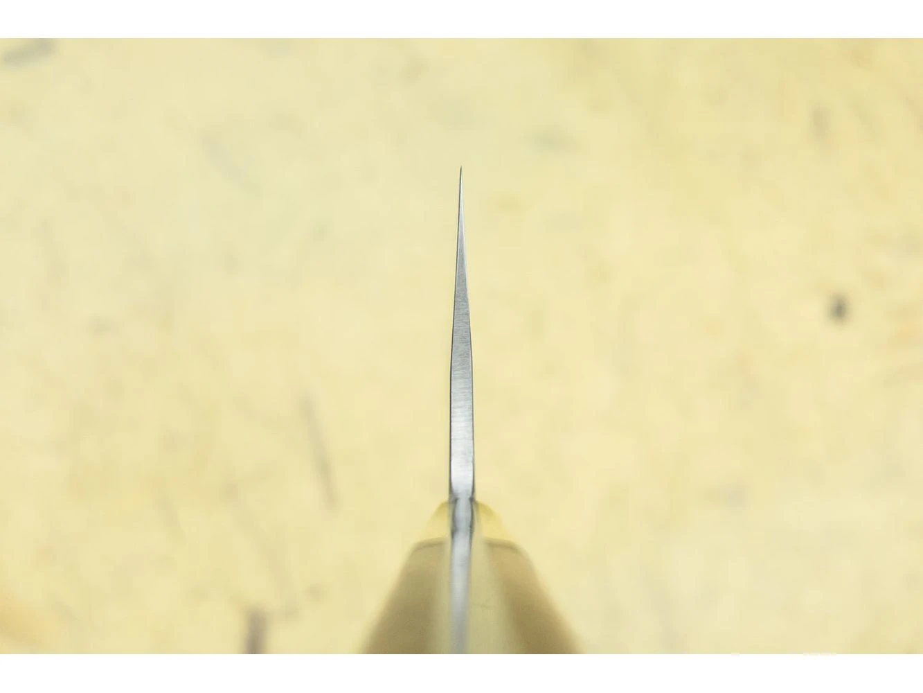 The blade is no slouch, either. Aogami Super is the king of knife steels—easy to sharpen, crazy sharp, and much easier to care for than other carbon steels. It is clad in softer stainless steel, so only the edge has to be kept dry to prevent rust. Whether this is your first knife or your fifteenth, it’s sure to be the crown jewel in your collection.