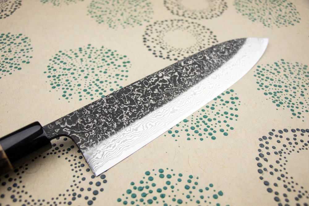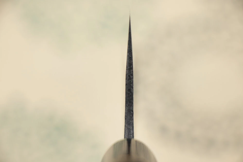 This blade’s core is made from hard SLD steel clad in softer stainless steel, and, thanks to his insane skill and blacksmithing genius, Masashi-san has pushed it to the absolute limit of hardness. Basically, this means his knives stay sharp way longer than this steel typically would but aren’t as fragile as most steel in this category. The best of both worlds!