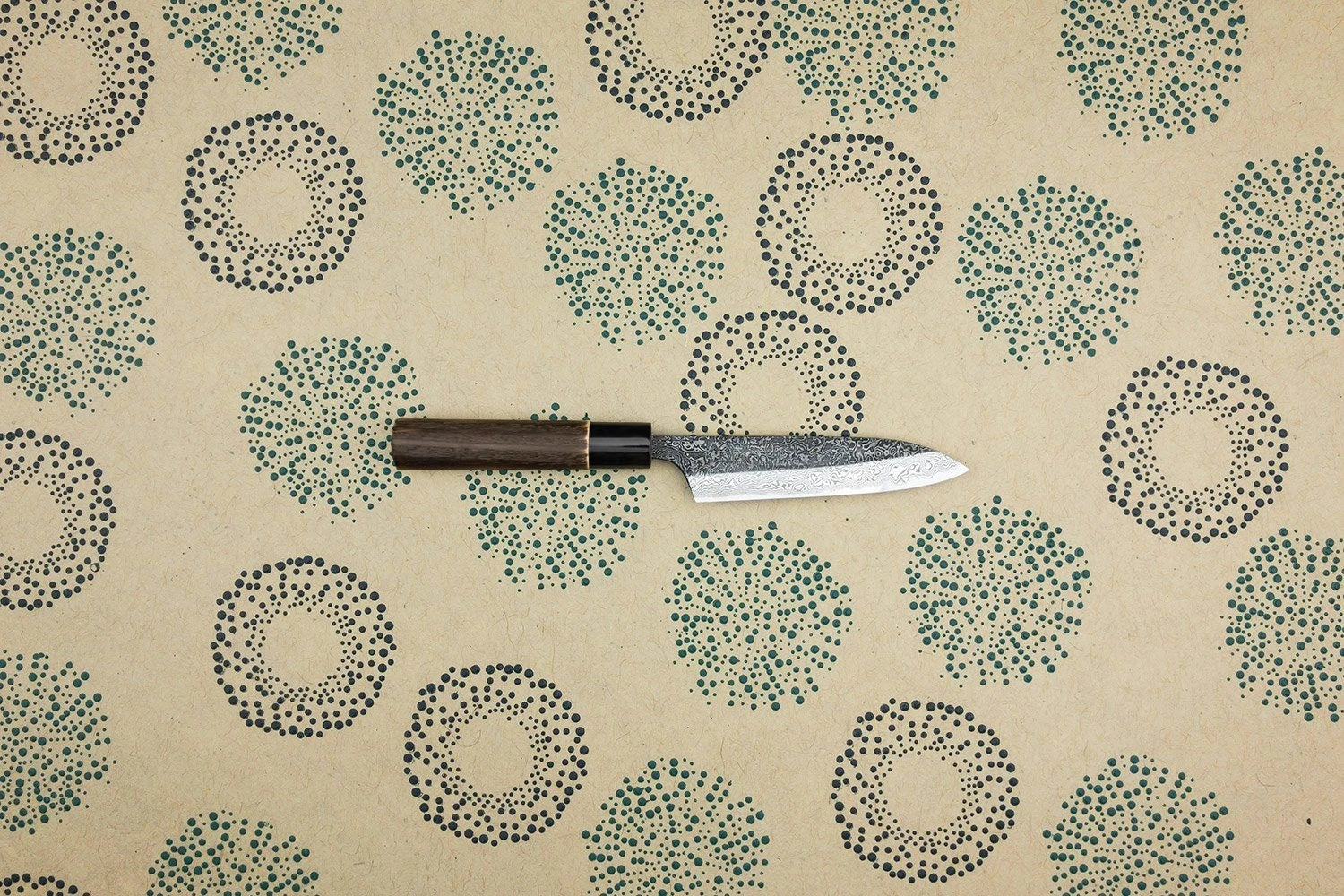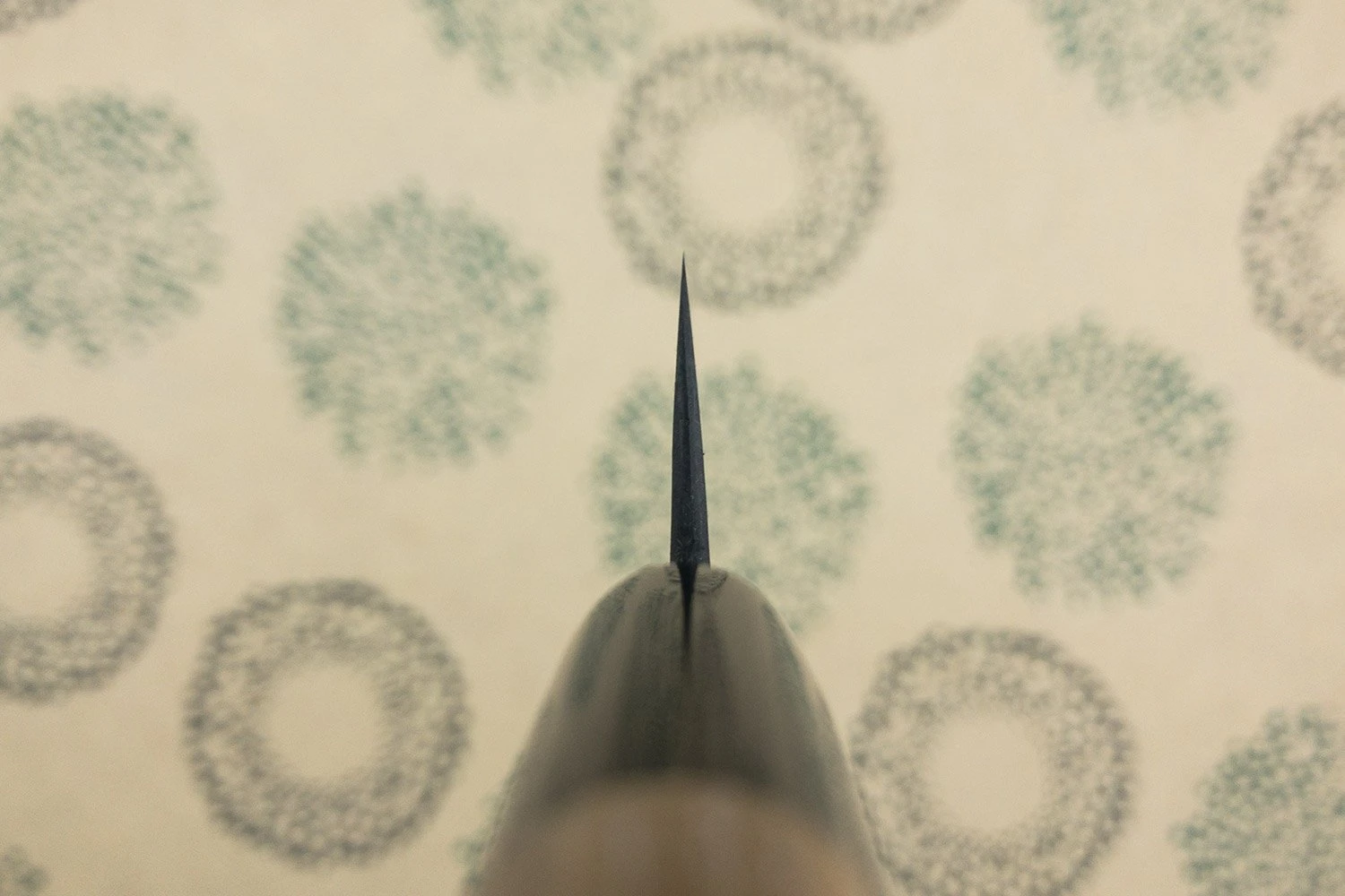 This blade’s core is made from hard SLD steel clad in softer stainless steel, and, thanks to his insane skill and blacksmithing genius, Masashi-san has pushed it to the absolute limit of hardness. Basically, this means his knives stay sharp way longer than this steel typically would but aren’t as fragile as most steel in this category. The best of both worlds!