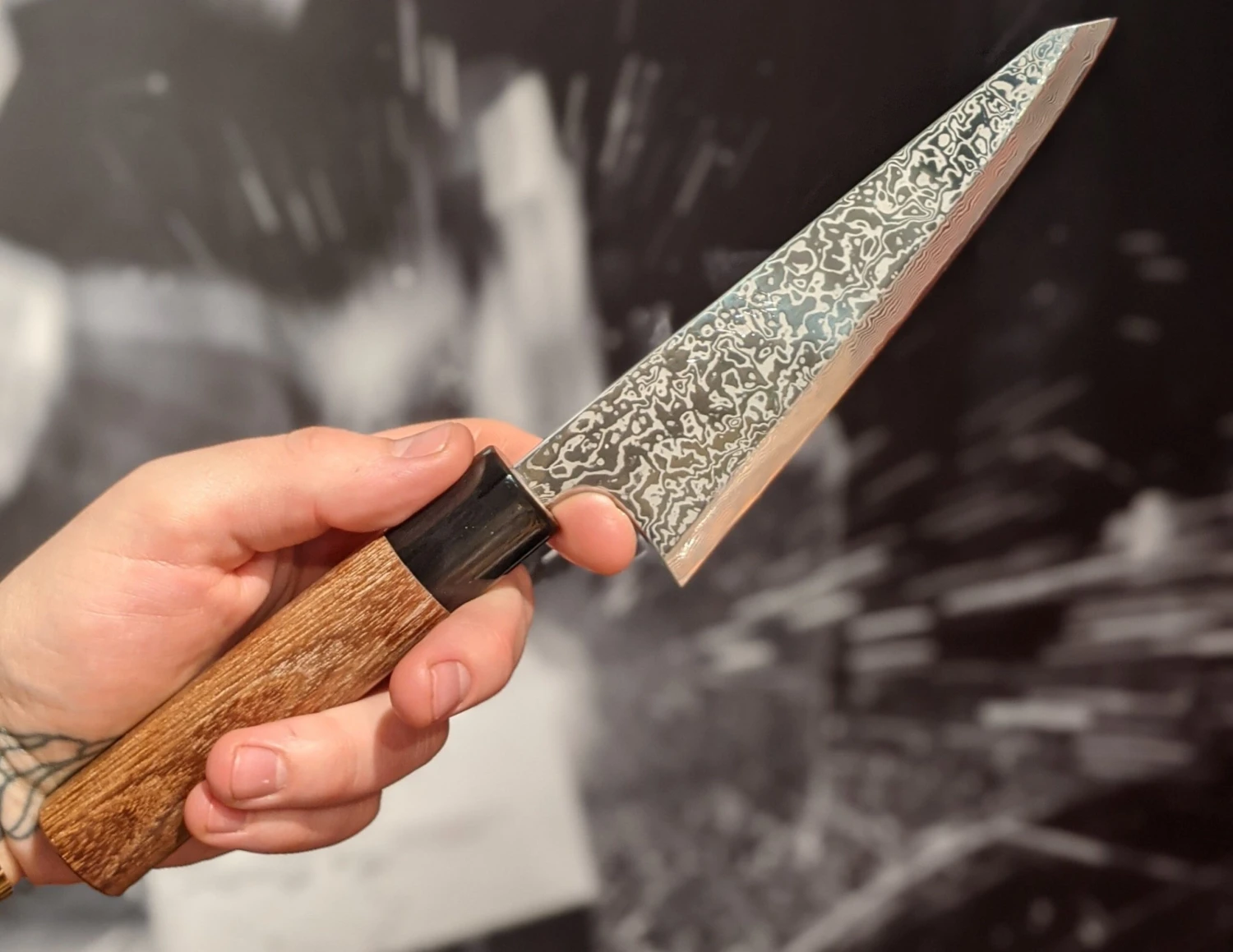Look at this knife! It’s so pretty. I’ve always referred to blades this good-looking as functional art pieces because they’re still tools meant to be used. The simple, elegant handle perfectly contrasts the stunning blade and keeps the knife lightweight yet confident, exactly how I like my kitchen knives.