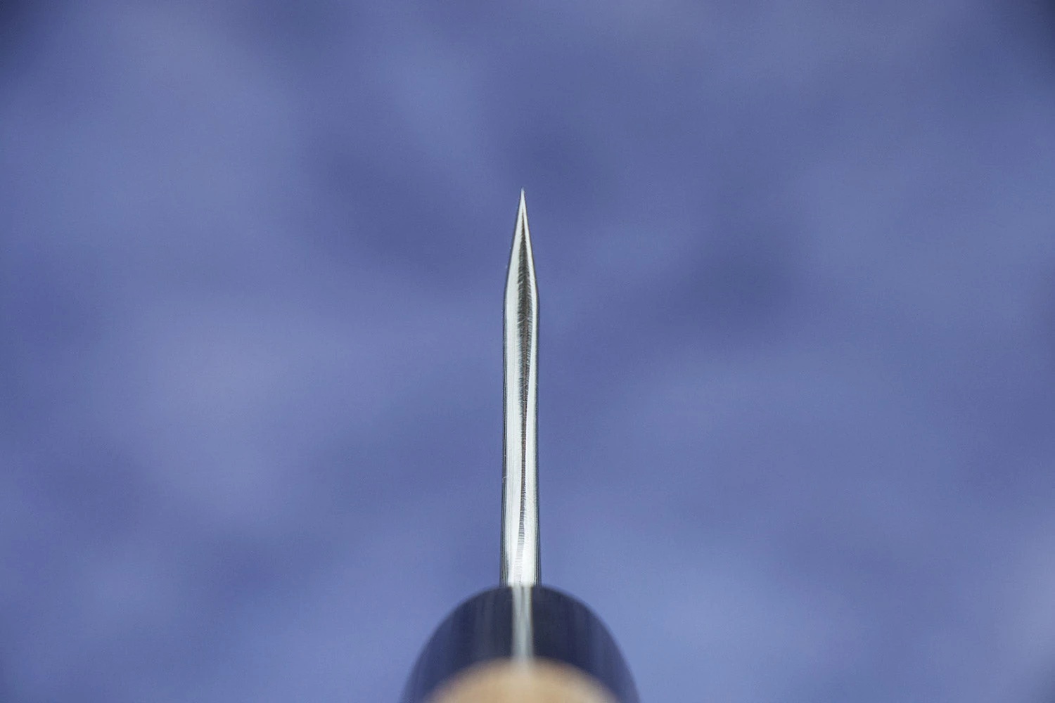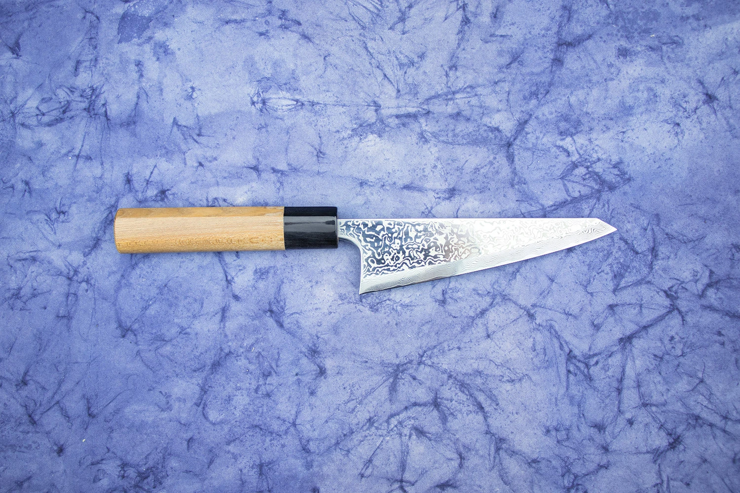 Masashi-san made this knife from a phenomenal steel called SLD, which he can push to the absolute limits of hardness due entirely to his knifemaking genius and a few top-secret techniques. He sharpens this knife with his unique trademark edge, making the back end a little tougher for chopping and the tip finer for delicate work.