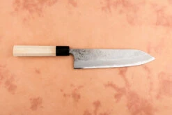 About the Shape – Inspired by the profile of a traditional European chef knife, Gyutos are a multi-purpose knife with a slight meat cutting bias. ‘Gyuto’ translates to ‘cow sword.’ If you want one knife to do it all, This is it. Starting at 180mm, Gyutos can reach the ridiculously long (and awesome) 370mm. For the at-home or professional cook, we recommend a Gyuto, which measures between 210mm and 270mm long.