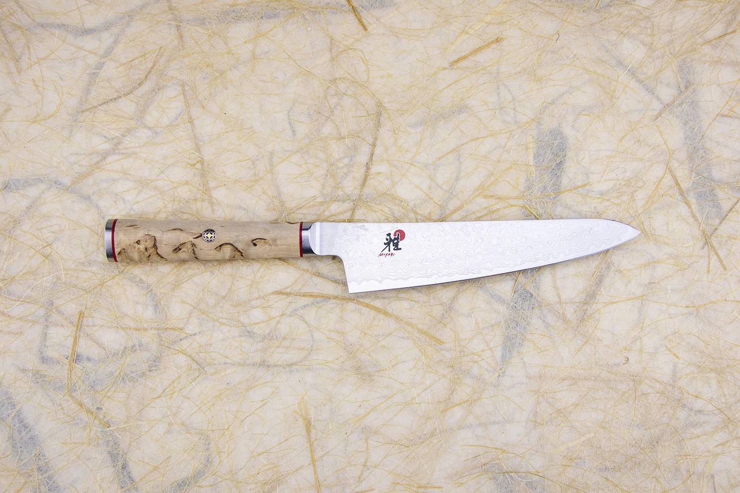 About Miyabi Birchwood – Miyabi knives stand out as works of art in the manufactured knife world. Zwilling of Germany, realizing that high-performance Japanese steel was taking over the knife world, did the practical thing and bought themselves two Japanese knife factories in Seki City Japan, a mecca for knife producers. Because of this unique blend, they offer a look and feel that bridges both cultures that are rare among knife makers.