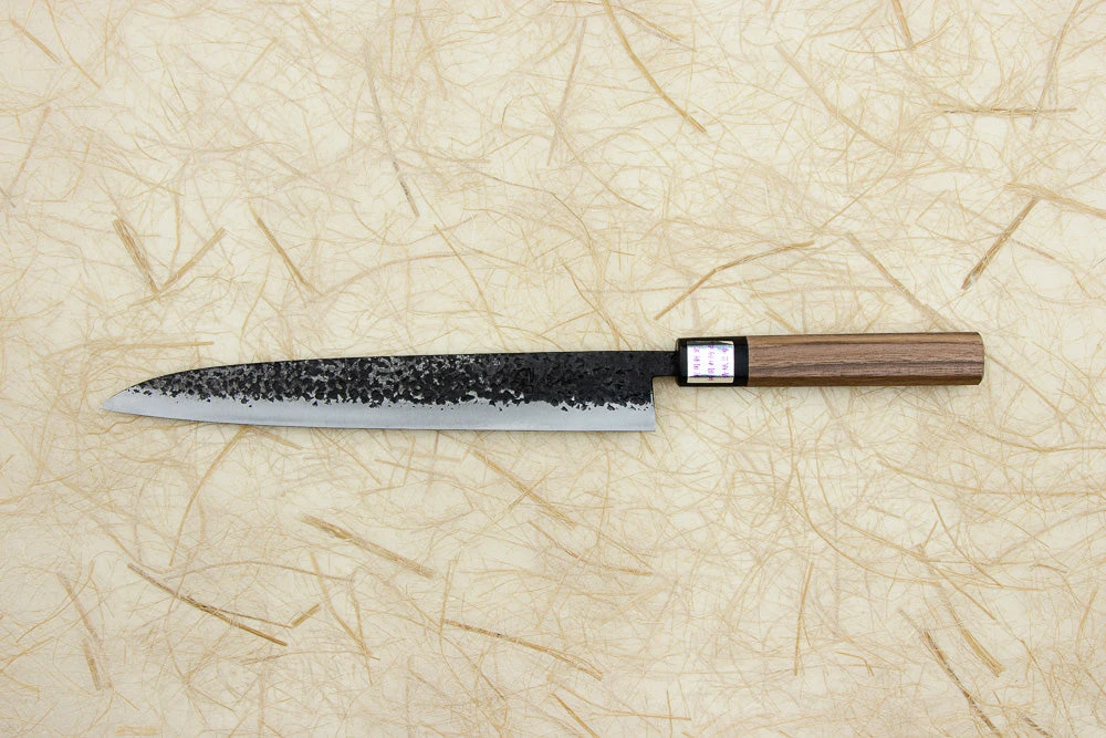 About the Shape – “Sujihiki” translates to “Flesh Slicer” and it does exactly what the name suggests, perfect for carving and slicing roasts, turkey, raw meats, fish, and all other proteins and the extended blade length allows you to slice with one long stroke, instead of sliding the knife back and forth in a sawing motion. Making clean slices of brisket or ultra-thin applications like Carpaccio a breeze to execute.