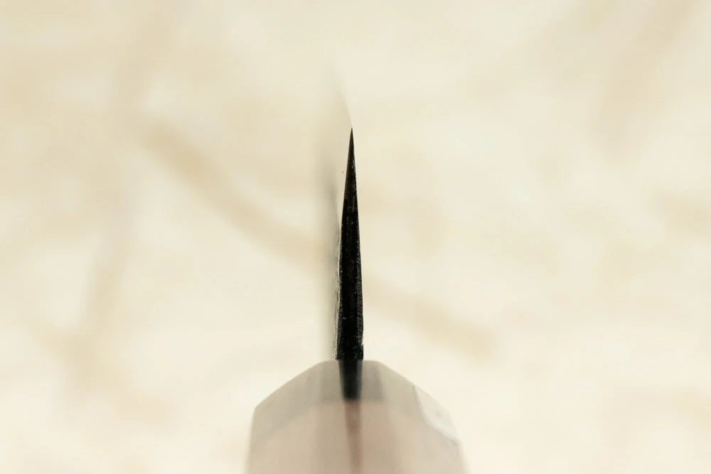 About Moritaka Ishime –Moritaka Hamono was founded in 1293 and have been producing high quality blades for 31 generations. I think they know what they’re doing by now. Five generations ago the family made the switch to producing only Hocho (kitchen knives).The knives made by the Moritaka family have a real classiness and beauty. This series of knives are known for a thinness which translates to fantastic sharpness. This finish is known as Ishime, Rock Surface, and was not used on kitchen knives before this series. This series is exclusive to Knifewear.