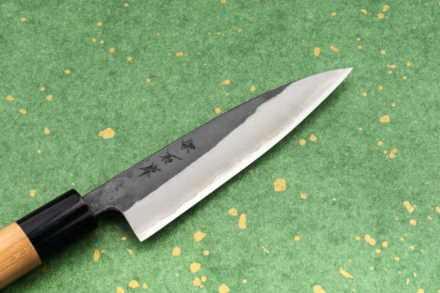 By working with traditional non-stainless steel known as ‘Aogami’, Muneishi-san has crafted knives that require a little maintenance and care but reward you by keeping a crazy edge for a super long time. He also clads his steel in a protective layer of stainless steel to balance the ease of maintenance.