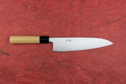 About the Shape – Inspired by the profile of a traditional European chef knife, gyutos are a multi-purpose knife with a slight meat cutting bias and “gyuto” even translates to “cow sword”. If you want one knife to do it all, This is it. The longer blade typically gives the blade a forward balance that allows it to work for you. While the blade would ideally be slid forward or back while cutting, they are also great for folks that prefer to ‘rock’ their knife while cutting.