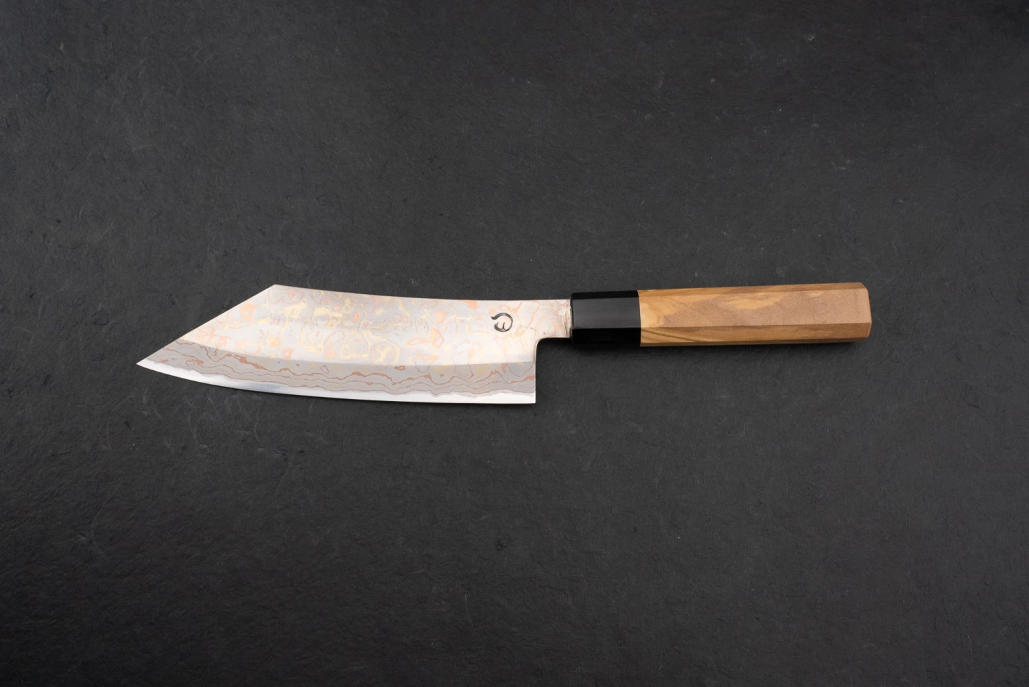 Mutsumi-san’s knives are deceptively simple at first but reveal his talent upon closer inspection. While the blade is quite hefty with a thick spine and body, he tapers it down to the edge beautifully. This construction allows it to cut very smoothly without becoming too delicate. He follows family tradition by working with traditional high-carbon steel known as shirogami; while this steel can rust easily, it sharpens beautifully and takes an edge that would put Wolverine’s adamantium claws to shame. He has been experimenting with new steels like V-Toku as of late, and we’re excite to see more innovation from his workshop.