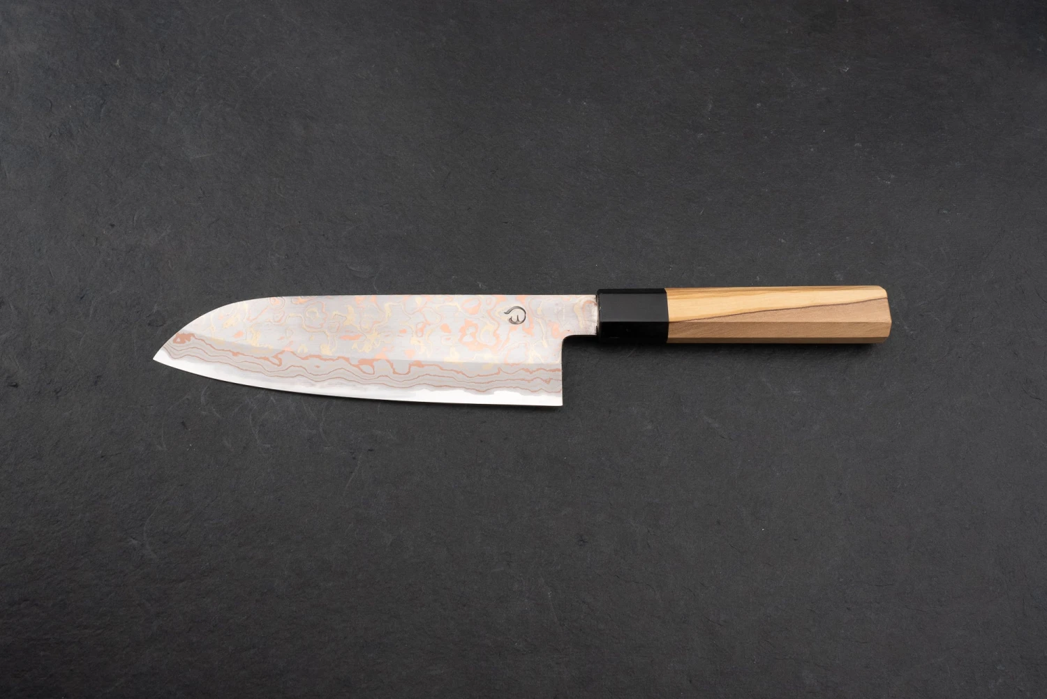 Mutsumi-san’s knives are deceptively simple at first but reveal his talent upon closer inspection. While the blade is quite hefty with a thick spine and body, he tapers it down to the edge beautifully. This construction allows it to cut very smoothly without becoming too delicate. He follows family tradition by working with traditional high-carbon steel known as shirogami; while this steel can rust easily, it sharpens beautifully and takes an edge that would put Wolverine’s adamantium claws to shame. He has been experimenting with new steels like V-Toku as of late, and we’re excite to see more innovation from his workshop.