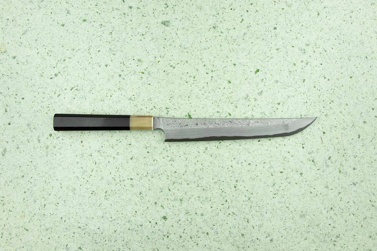 About the Shape – The Takobiki is a Kanto region (Tokyo) variation of the yanagiba, it translates to “octopus cutter”, but isn’t limited to just being used to prepare octopus, you’ll find it will be adept at any task you might use a yanagiba for, such as preparing sashimi or slicing meat. It can be traditionally found with a square tip, but also it has become more popular recently to see it with the Sakimari tip and is always single-bevel for that extra level of sharpness.