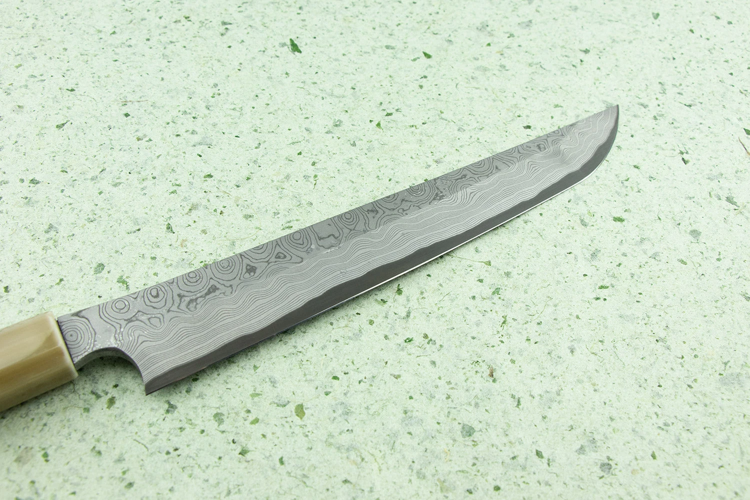 About Nigara Hamono –Nigara-san is a relatively new knifemaker out of Aomori prefecture, but they are not new as a company. The company has been around for over 350 years, tracing back to their swordsmith ancestors. Knifemaking is a small part of what they do; they also produce large steel beams and such for buildings! Go Yoshizawa, age 35, is a young blacksmith who is the company president’s son and has decided to go back to their blacksmithing roots. He now makes unique and stunning tsuchime knives and some hand-folded Damascus.