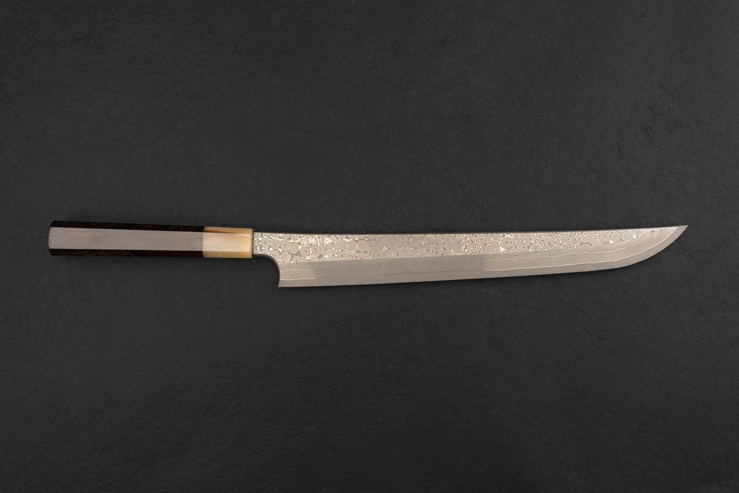 Be the first to review “Nigara Ginsan Kurozome Damascus Sakimaru Yanagiba 300mm” Cancel reply