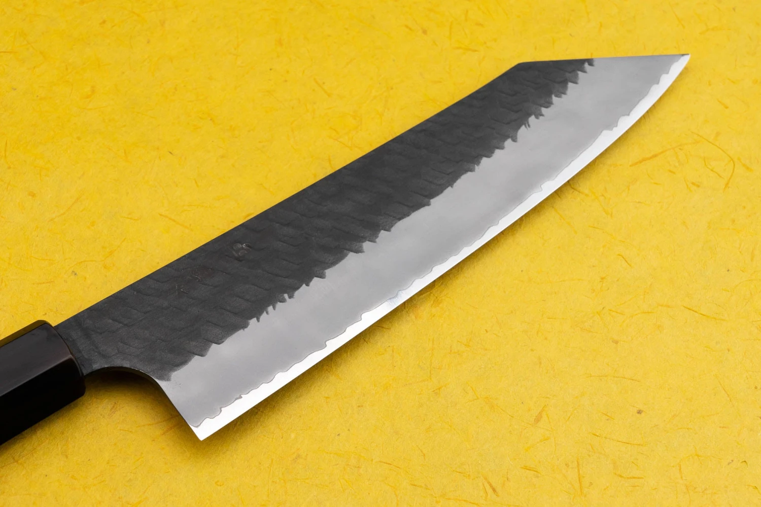 About Nigara Hamono –Nigara-san is a relatively new knifemaker out of Aomori prefecture, but they are not new as a company. The company has been around for over 350 years, tracing back to their swordsmith ancestors. Knifemaking is a small part of what they do; they also produce large steel beams and such for buildings! Go Yoshizawa, age 35, is a young blacksmith who is the company president’s son and has decided to go back to their blacksmithing roots. He now makes unique and stunning tsuchime knives and some hand-folded Damascus.