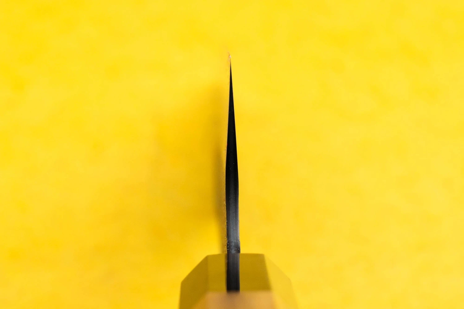 About the Shape – Inspired by the profile of a traditional European chef knife and badass tip of a Kiritsuke (Traditionally a single bevel knife), double bevel Kiritsukes are a multi purpose knife with a slight meat cutting bias. If you want one knife to do it all, and look cooler than your buddy, this is your knife. For the at-home or professional cook, we recommend a Kiritsuke which measures between 210mm and 240mm long.
