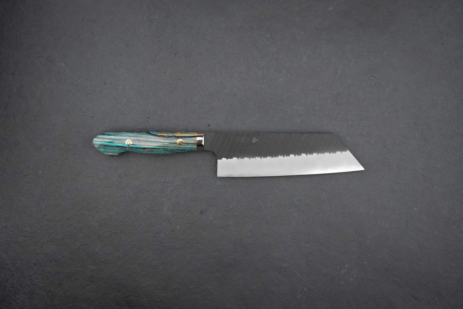 About Nigara Hamono –Nigara-san is a relatively new knifemaker out of Aomori prefecture, but they are not new as a company. The company has been around for over 350 years, tracing back to their swordsmith ancestors. Knifemaking is a small part of what they do; they also produce large steel beams and such for buildings! Go Yoshizawa, age 35, is a young blacksmith who is the company president’s son and has decided to go back to their blacksmithing roots. He now makes unique and stunning tsuchime knives and some hand-folded Damascus.