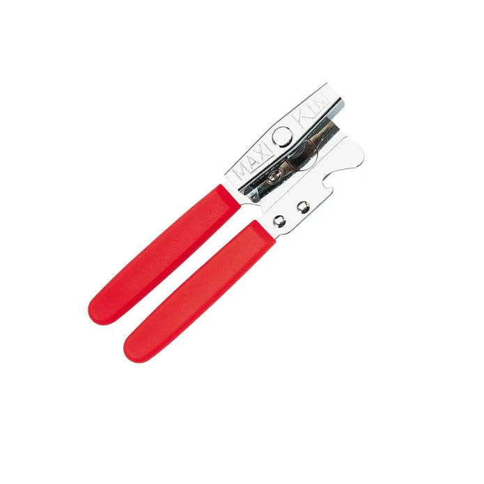 The Maxi Kim is a heavy-duty, conventionally shaped can opener that is anything but conventional. It features a sharpener cutter made of tempered steel, and opens cans of all shapes and sizes while trimming and tapering the can edge to make it safer. It is also suitable for right and left-handed users.