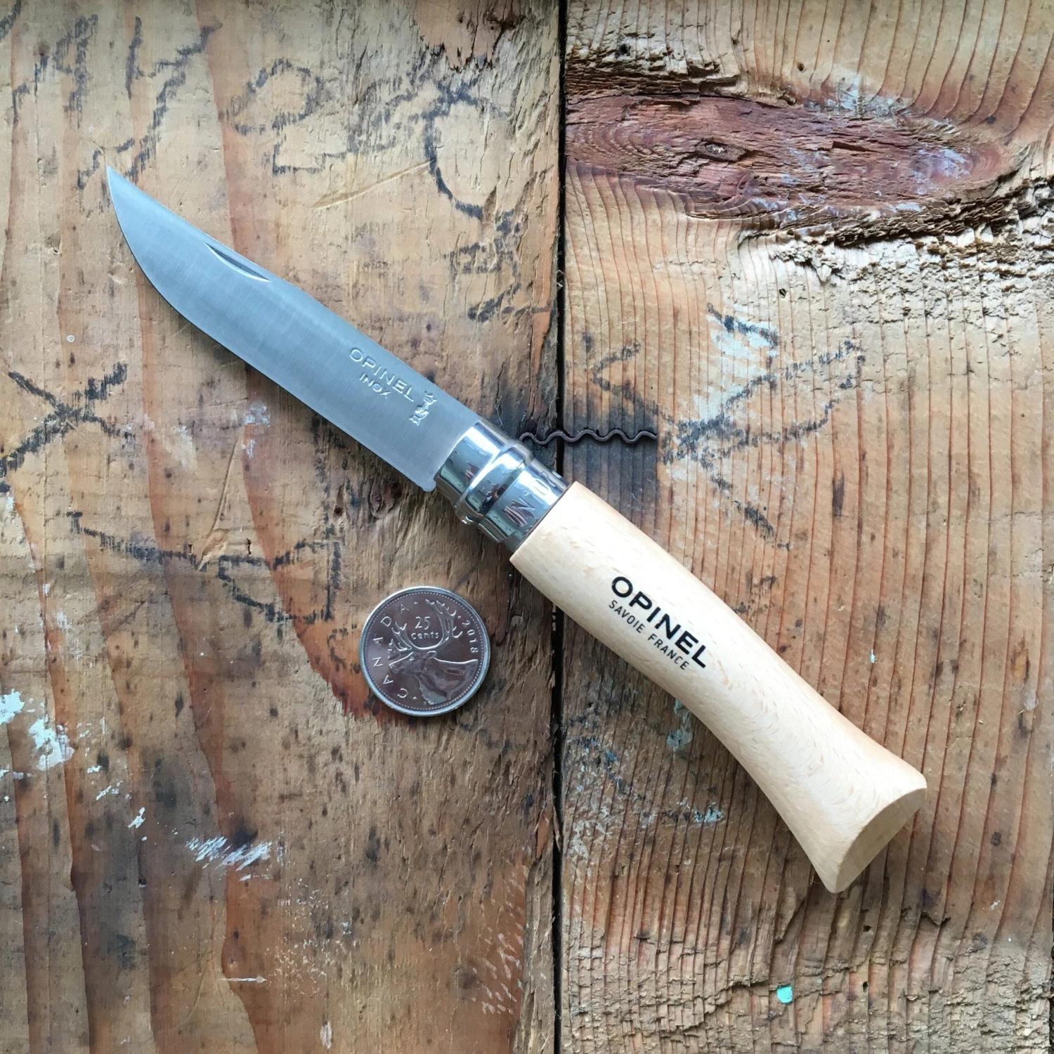 This knife has a stainless steel blade, a relatively new innovation in Opinel designs. Unlike its predecessor, they do not rust and are a much lower maintenance option than their carbon steel cousins.