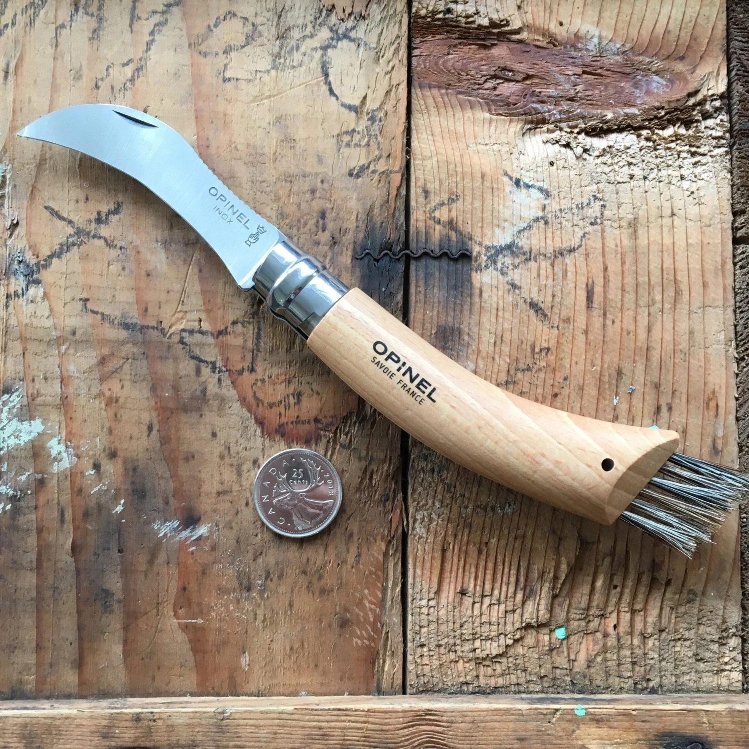 Opinel is a world-renowned brand for many reasons. Their production is top-notch, their innovative ring-lock is reliable and durable, and their design is timeless. These pocket knives excel at any task, giving you a feeling of self-confidence just by sitting in your pocket. This inward-curved blade is perfect for foraging and picking delicate items. The horse-hair brush can be used to clear dirt and debris from your mycological gems.