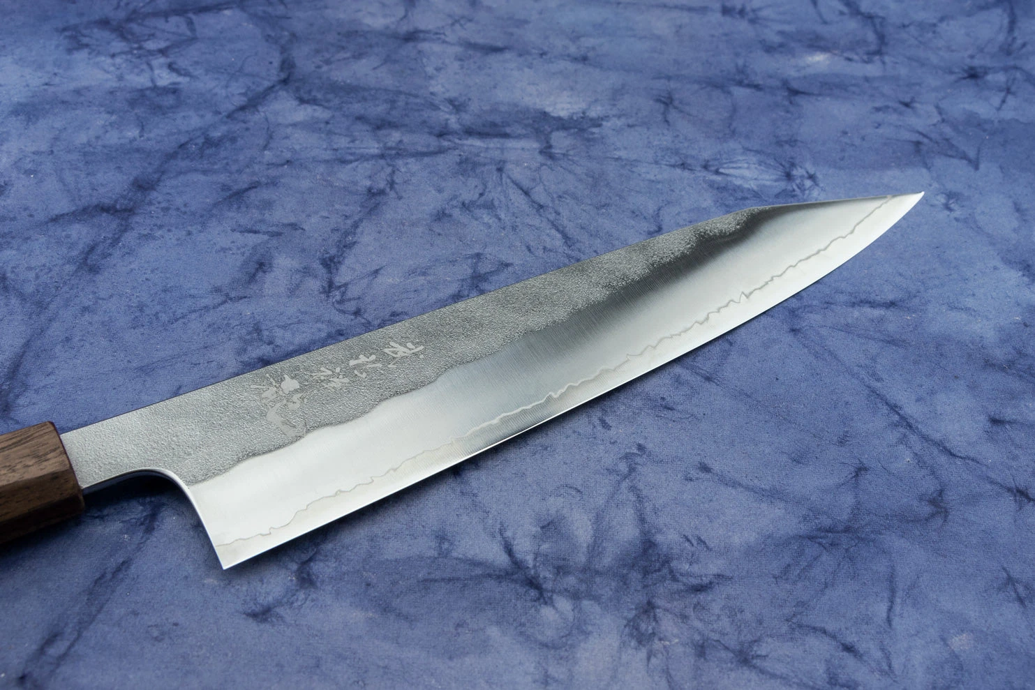 About the Shape – Inspired by the profile of a traditional European chef knife, Gyutos are a multi-purpose knife with a slight meat cutting bias. “Gyuto” translates to “cow sword.” If you want one knife to do it all, This is it. Starting at 180mm, Gyutos can reach the ridiculously long (and awesome) 370mm. For the at-home or professional cook, we recommend a Gyuto which measures between 210mm and 270mm long.
