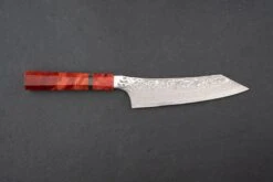About Ryusen Gurenhiryu – Ryusen Hamono was founded in 1948 as a knife sharpening company. They worked with companies like Takefu Special Steel as early as the 1970s to develop high-quality knives made with stainless steel, at a time when most other knife makers were struggling to produce decent stainless steel knives. Now, they have expanded their collection of knives not only having sharpness and longevity in mind but with a sleek modern design.