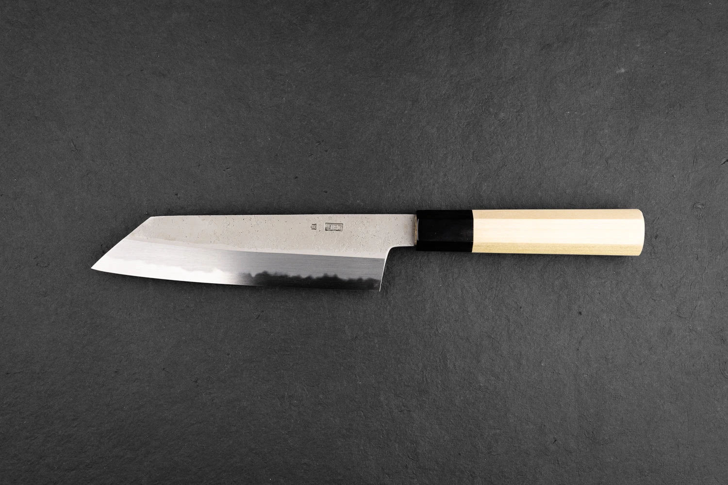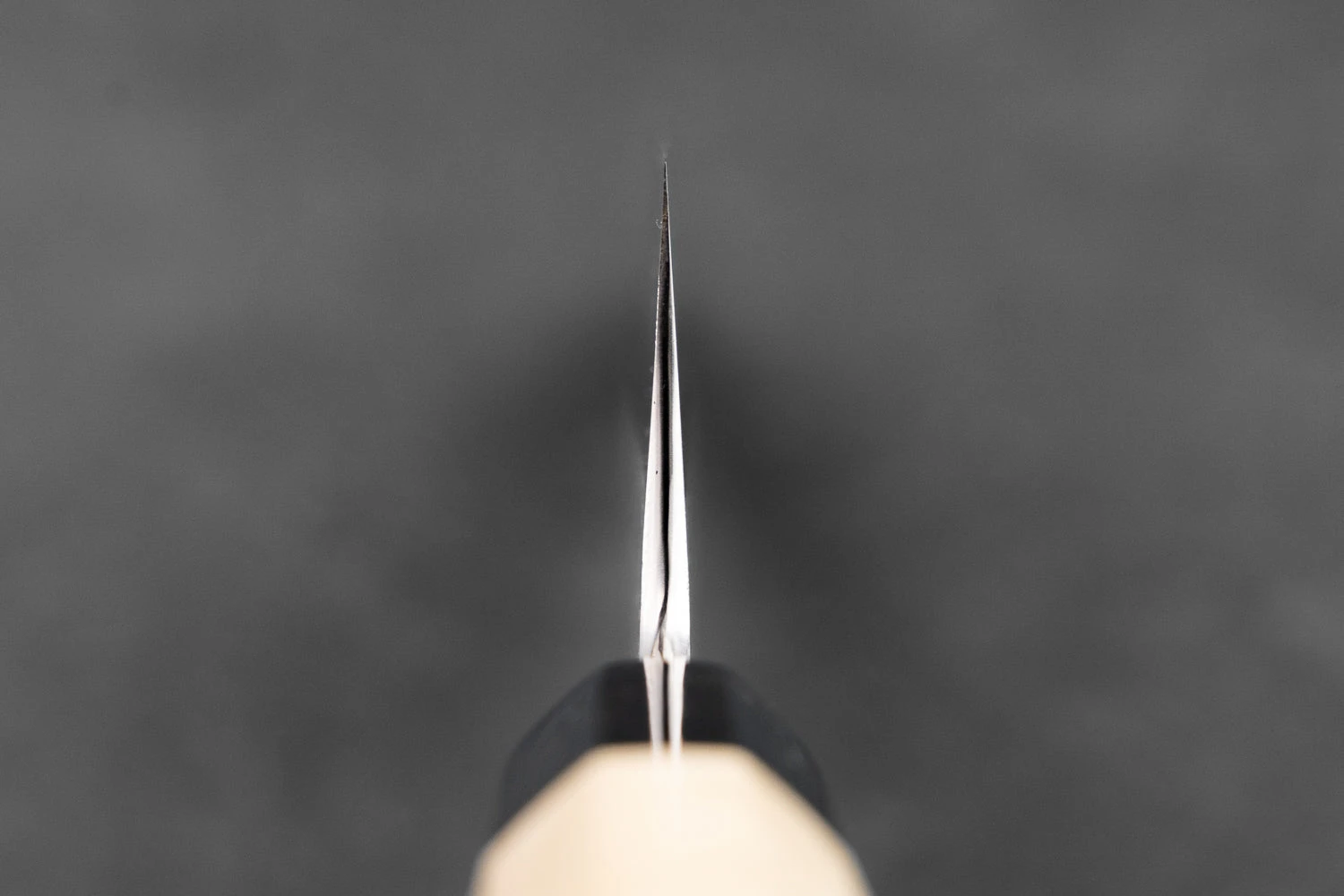 The Shirogami steel used in this knife is very traditional in Japanese knife making. Shirogami is prized for its purity, which allows it to get blazingly sharp and keep its edge incredibly well.