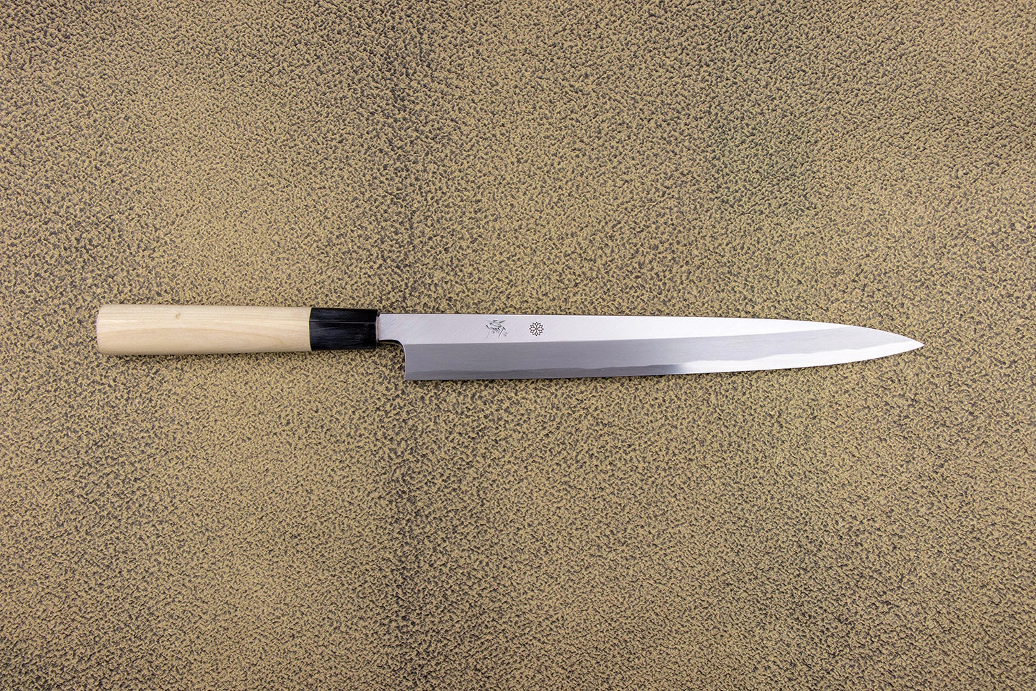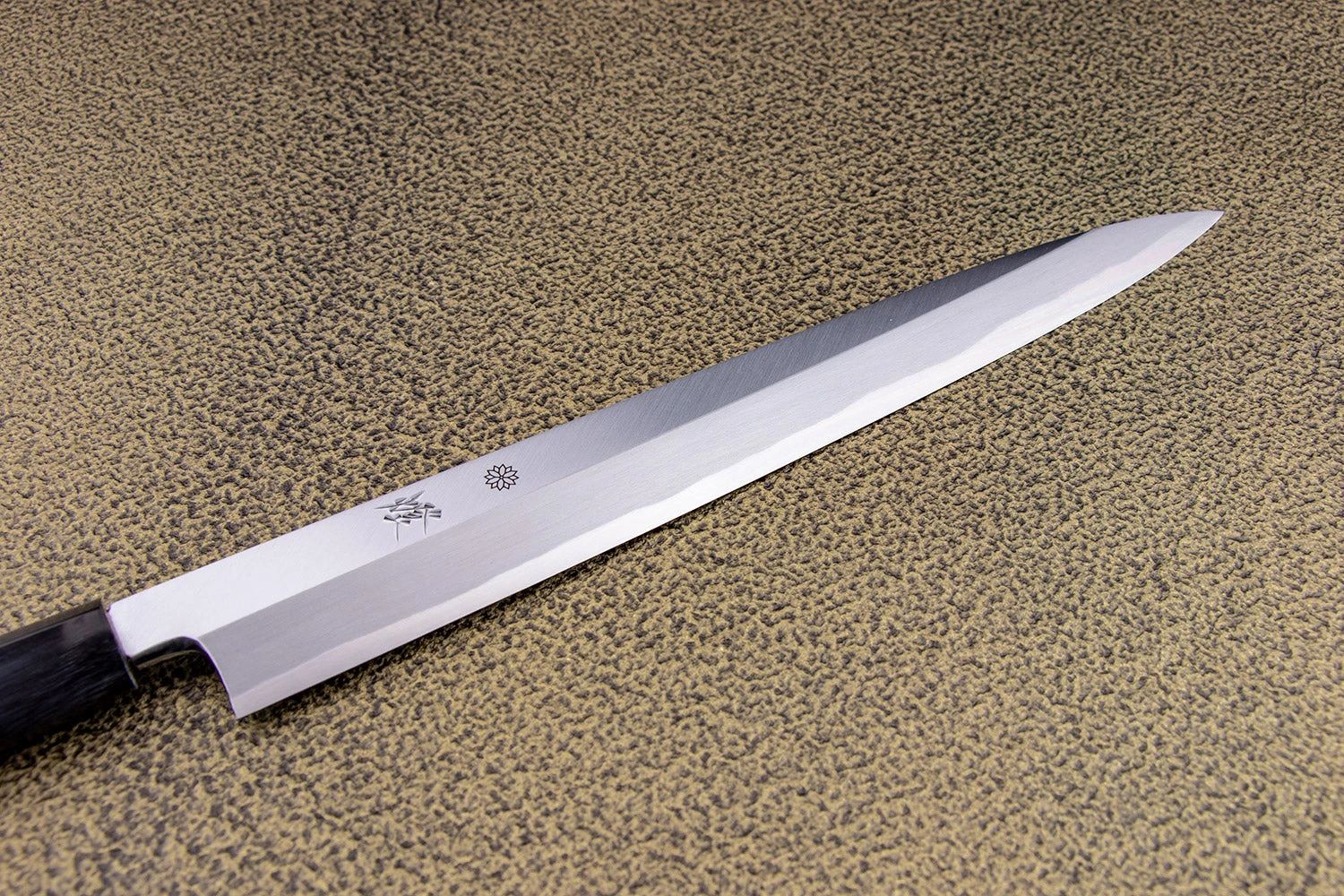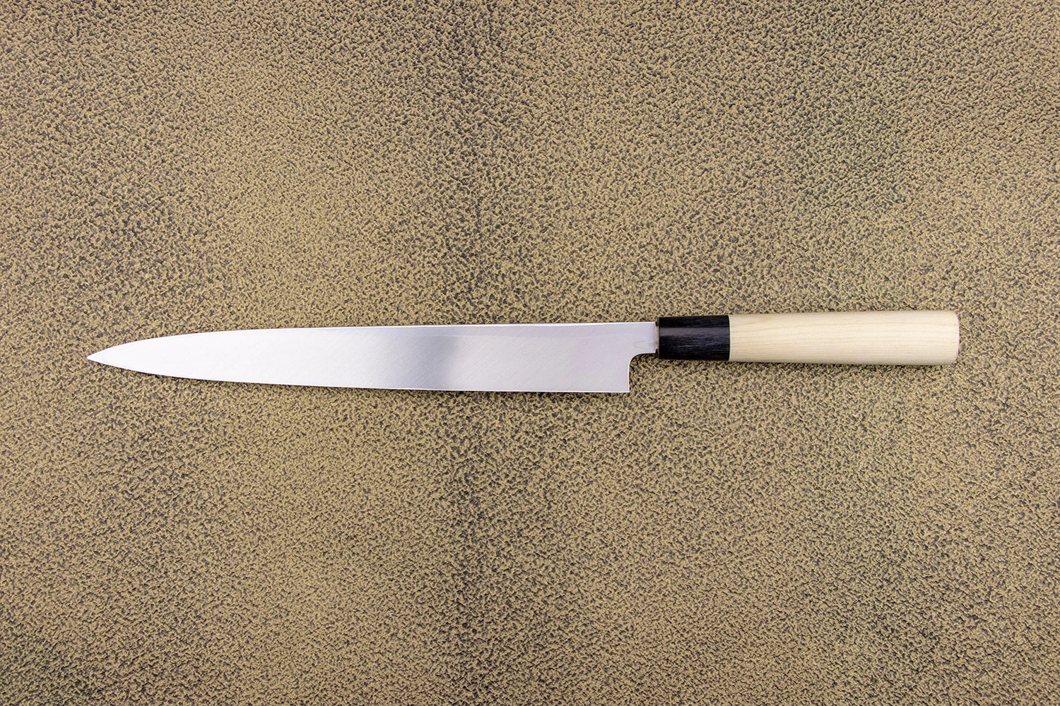 About the Shape –Yanagibas are long, thin, single-bevel knives ground and sharpened on one side. Translating to “willow’s leaf,” they’re graceful and elegant like their name suggests. Yanagibas are commonly used for slicing sashimi, but can also be used for carving other meats like roast beef and prime rib.