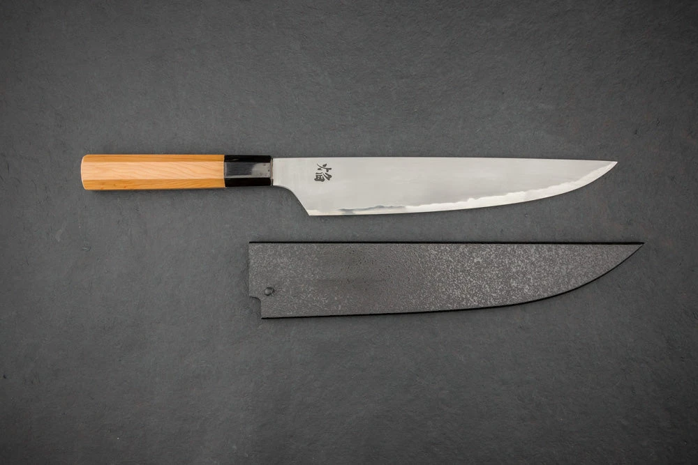 Sakai Takayuki is well-known as the largest knife maker in Sakai. The company hosts a number of blacksmiths and craftsmen who work together to create a huge array of knives. Although the Sakai region traditionally specializes in single-bevel blades, Sakai Takayuki makes many different shapes.