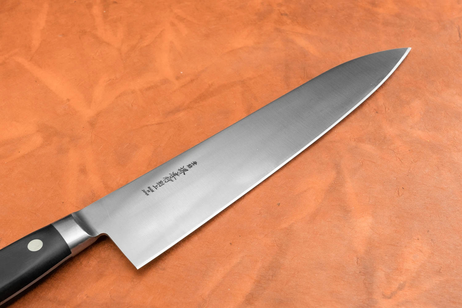 About the Knife Line: The SK4 series from Sakai Takayuki is the perfect gateway to high-carbon steel knives for both home cooks and professional chefs. The European-style handle gives them a confident, familiar feel for western cooks, while the carbon steel blade cuts like crazy! We love this line for professionals as they are super high performance but more rugged and less flashy than some of our fancier knives.