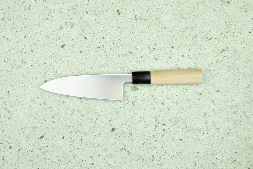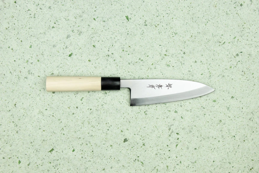 About the Shape –Deba means “short fat tooth” and this describes the shape of the knife. This is the first knife a sushi chef would use when preparing fish. It is used to fillet fish and butcher boneless meat. The Deba is a traditional Japanese blade that is only sharpened on one side. This is called “single bevel”. Don’t let the shape and weight of a Deba fool you; they are nimble and precise. Choose the length of your Deba based on the size of fish you’ll be butchering most often.