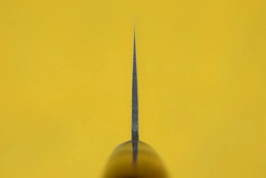 About the Shape – This is also a multi purpose knife, but with a slight vegetable bias. Santoku means ‘Three Virtues’ or ‘To solve Three Problems’. The virtues or problems are slicing, dicing and mincing. Santoku is usually found in 160mm – 190mm lengths. These are more and more popular in Western kitchens due to the unique shape and smaller easy to handle size.