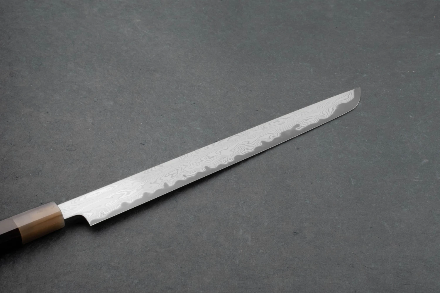 Be the first to review “Satoshi Nakagawa X Naohito Myojin Aoichi Etched Damascus Sakimaru Sujihiki 330mm” Cancel reply