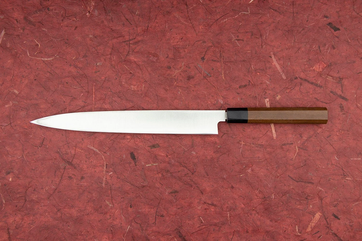 About the Shape – The Yanagiba is a slicer’s dream. Graceful, sexy, and capable of amazing sharpness, you’ll find a Yanigiba in the hands of every sushi chef worth their salt. Yanagi means “willow leaf” and refers to this knife’s long, narrow shape. The Yanagiba is a traditional Japanese blade that is only sharpened on one side. This is called “single bevel.” Traditionally used for slicing sashimi, they are equally at home with roast beef, ham, or calf’s liver. Once you go Yanagiba, you’ll never go back.